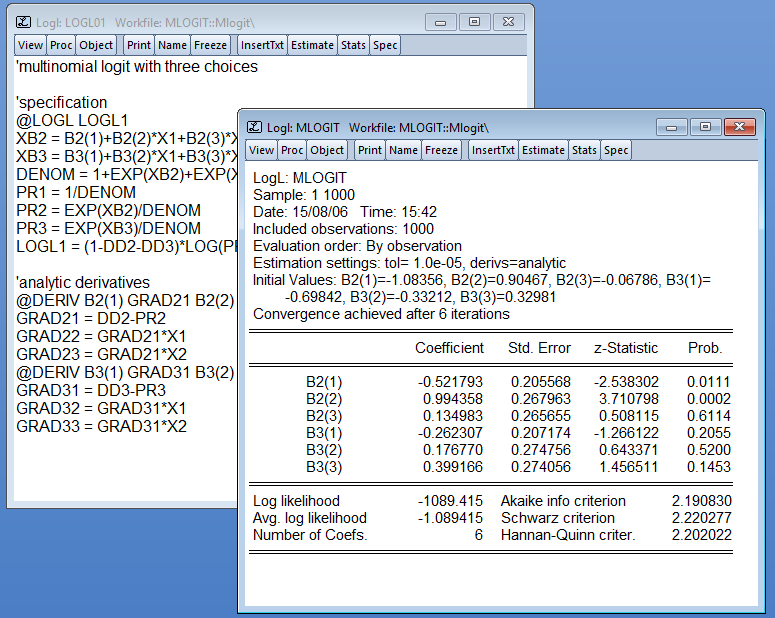 User-Specified Maximum LikelihoodFor custom analysis, EViews' easy-to-use likelihood object permits estimation of user-specified maximum likelihood models. You simply provide standard EViews expressions to describe the log likelihood contributions for each observation in your sample, set coefficient starting values, and EViews will do the rest. |