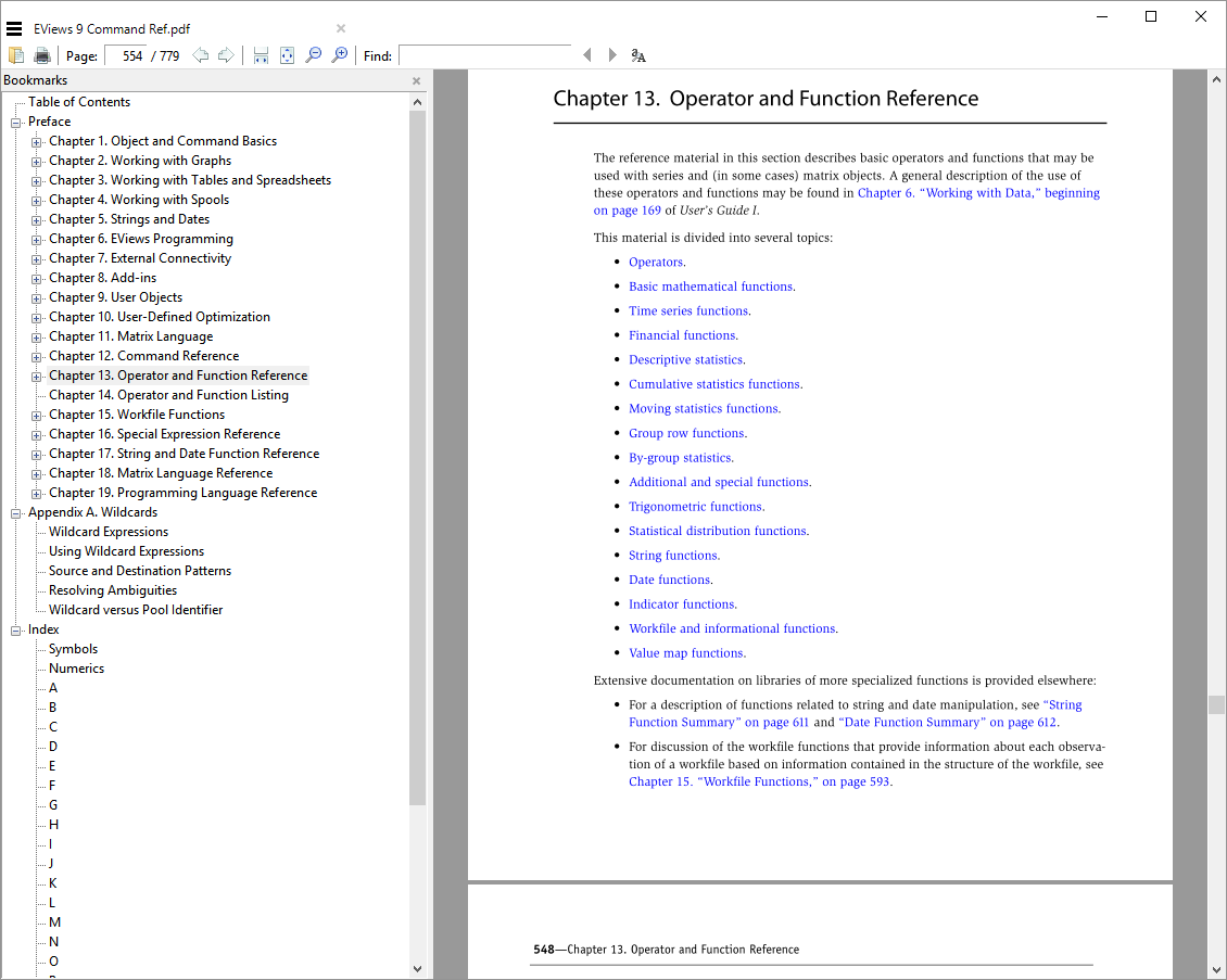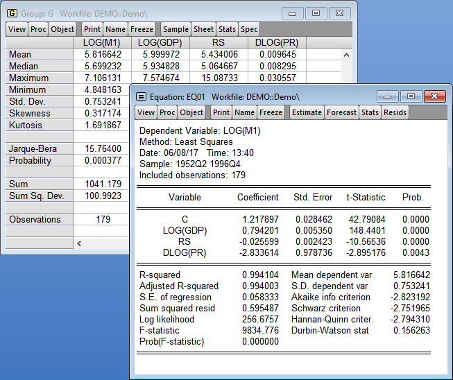 Part 3: Sophisticated Data ManagementPowerful analytic tools are only useful if you can easily work with your data. EViews provides the widest range of data management tools available in any econometric software. From its extensive library of mathematical, statistical, date, string, and time series operators and functions, to comprehensive support for numeric, character, and date data, EViews offers the data handling features you’ve come to expect from modern statistical software. |