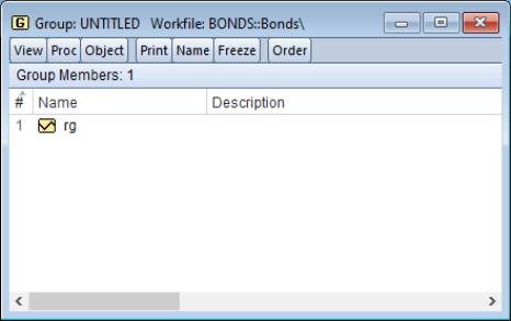 With a group, you can refer to sets of variables using a single name. Thus, a set of variables may be analyzed, graphed, or printed using the group object, rather than each one of the individual series. Therefore, groups are often used in place of entering a lengthy list of names. Once a group is defined, you can use the group name in many places to refer to all of the series contained in the group.