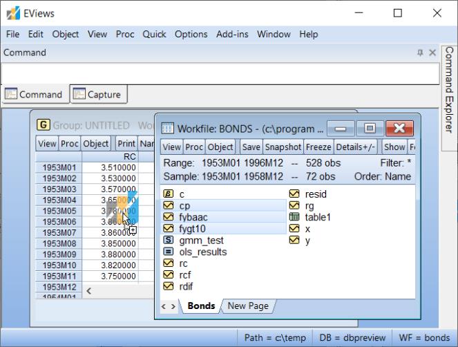 Alternately, you can drag-and-drop series into the or views of the group EViews will automatically add the series to the group.