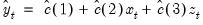 For every observation in the forecast period, EViews will compute the fitted value of Y using the estimated parameters and the corresponding values of the regressors, X and Z: