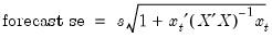 The variability of forecasts is measured by the forecast standard errors. For a single equation without lagged dependent variables or ARMA terms, the forecast standard errors are computed as: