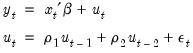 If you choose the option, both the lagged dependent variable and the lagged residuals will be forecasted dynamically. If you select , both will be set to the actual lagged values. For example, consider the following AR(2) model: