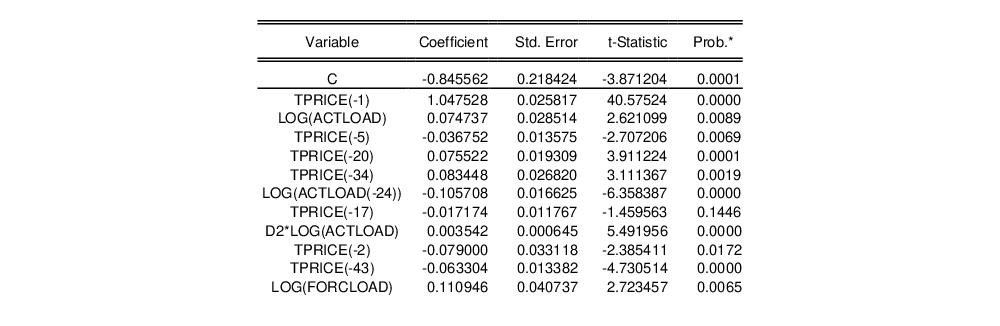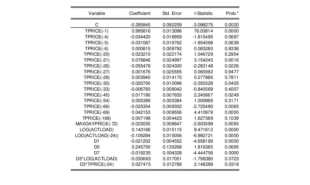 As a dependent variable we use the series TPRICE containing the deviation of the log of the spot price from the mean of the log of spot prices for the same hour.
