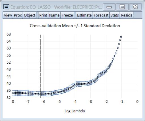 Selecting , shows a graph of the full path of the cross-validation evaluation statistic: