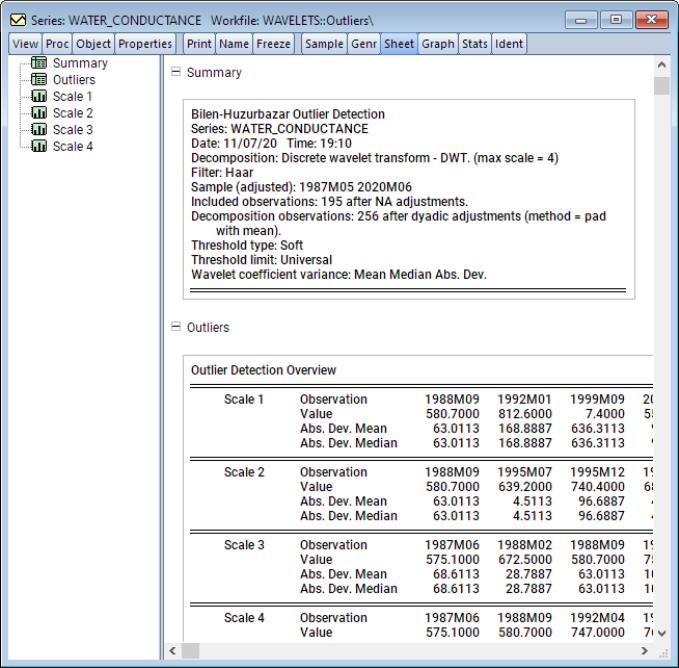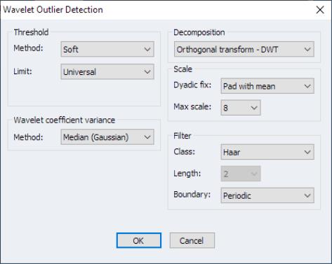 “Wavelet Outlier Detection”. To perform wavelet outlier detection in EViews, open a series window and proceed to to display the dialog.