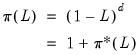 The fractionally integrated GARCH (FIGARCH) model modifies this specification by introducing a fractional difference term. The FIGARCH variance may be written as,