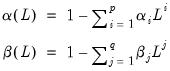 which is an alternative parameterization of the specification above. Estimating the latter model will yield identical estimates to those reported by EViews except for the intercept term
