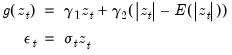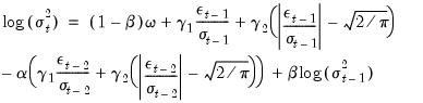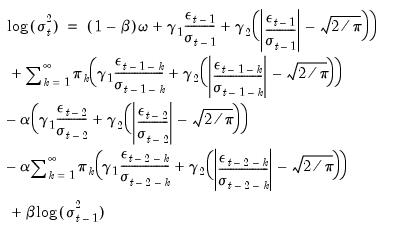 t-distribution, or GED. Second, Nelson's specification for the log conditional variance is a restricted version of: