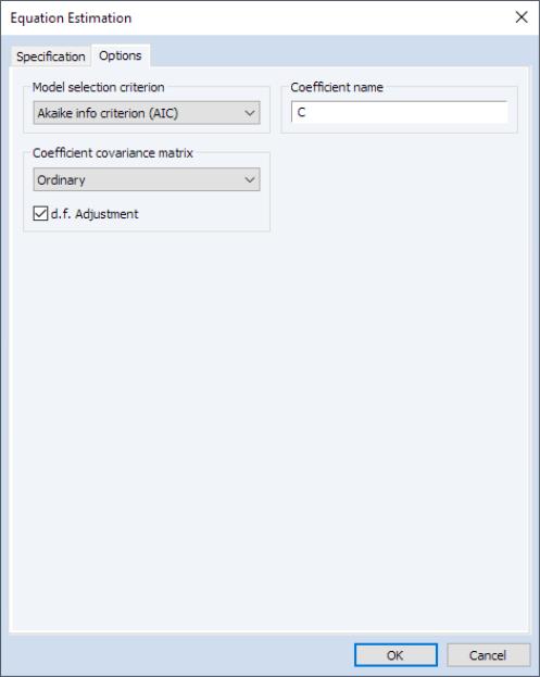 In the case of standard ARDL models, this options dialog looks like the figure below