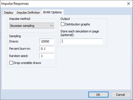 The impulse response dialog for Bayesian VARs has an additional tabthat contains Bayesian Specific settings: