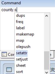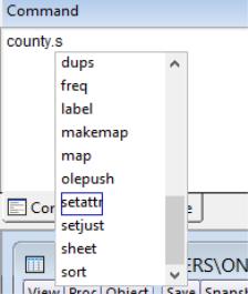 As with object name auto-complete, typing a portion of a command will add the full string if there are no ambiguities, or will display a list of applicable commands with the nearest match partially selected: