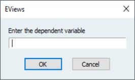 Three program variables are used in this program: %DEP, %REGS and !RESULT. %DEP is the string variable that will contain the user’s entry for the dependent variable. To begin, we set this equal to an empty string. %REGS is used to store the user’s entry for the list of regressors. We set this equal to “C” to begin with. This means that the default setting for the regressor list will be a constant. !RESULT will be used to track the completion of the dialogs. Every dialog returns an integer value depending on whether the user clicked or (or in some cases or ). We initialize this value to 0.