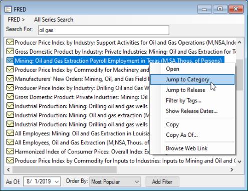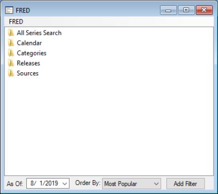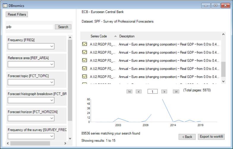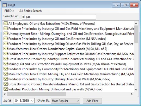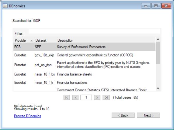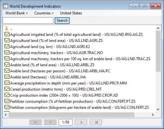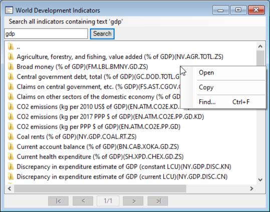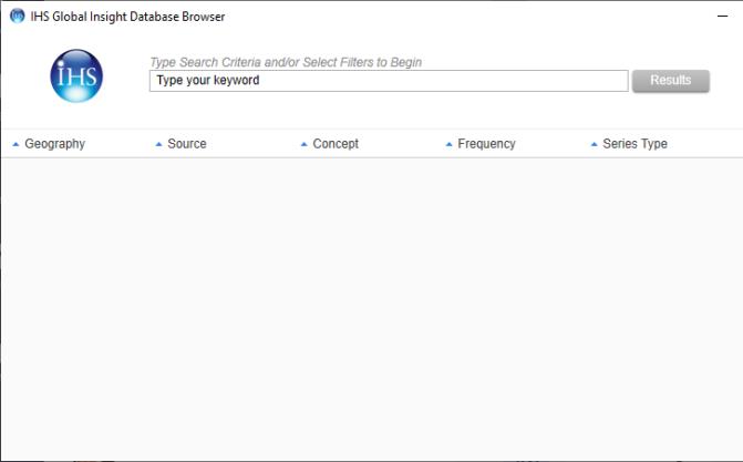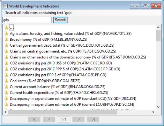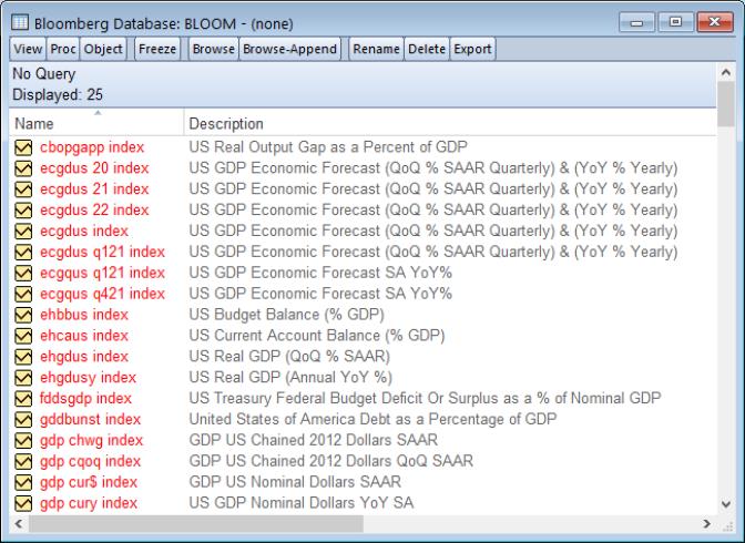 For example, we can simply type “us gdp” into the box and press . You should return to the database window with the following search results displayed:
