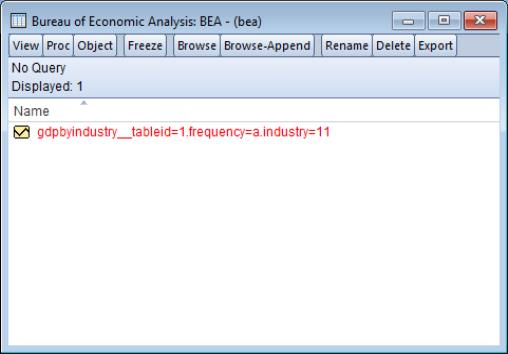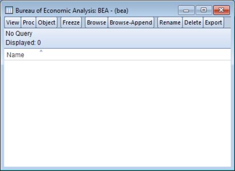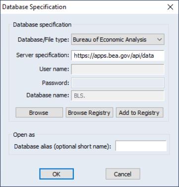 Use of the BEA service is free but requires registration. The first time you attempt to open the database you will be asked to enter an API Key obtained from the Bureau of Economic Analysis: