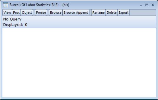 EViews 10 offers a custom interface to BLS data. To open the BLS database, select from the main EViews menu, then select from the dropdown menu: