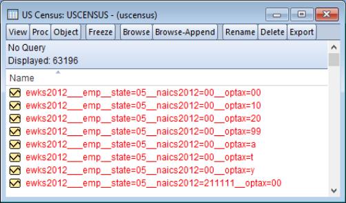 EViews offers a custom interface to the Census data. To open the Census database, select from the main EViews menu, then select from the dropdown menu:
