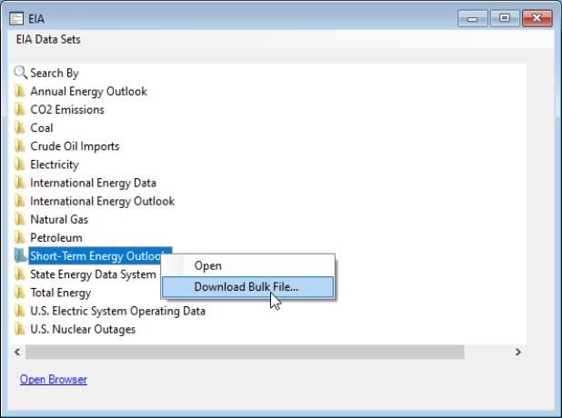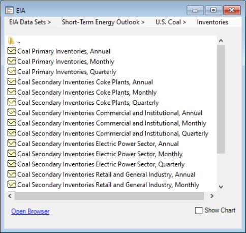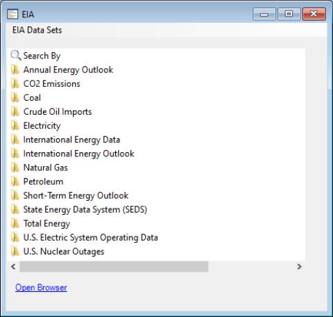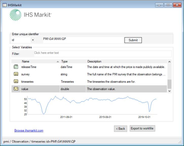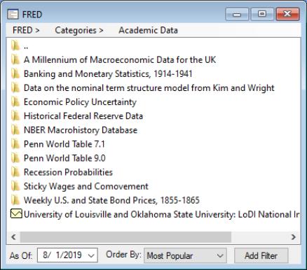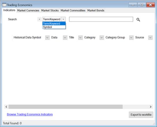 You may elect to search for a or a . Once the series of interest is found and selected, drag-and-drop or click the button to export the series directly into a new or existing workfile.