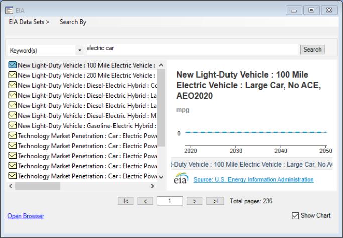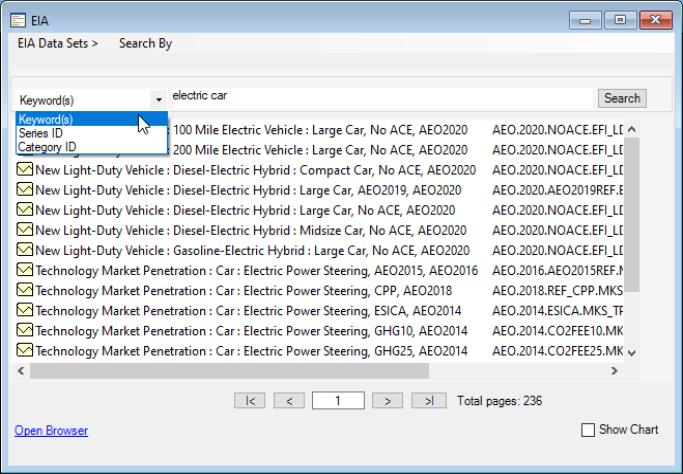 • The button allows searching by keyword. Simply enter a keyword into the edit box and click the button. EViews will display a list of indicators that match the keyword.