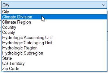 Select one or more geography options and navigate to the next dialog. If there are any variables required by the dataset you will be asked to choose available values: