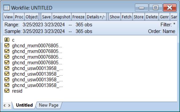 Any series displayed in the database may be manipulated following the usual EViews interface conventions: