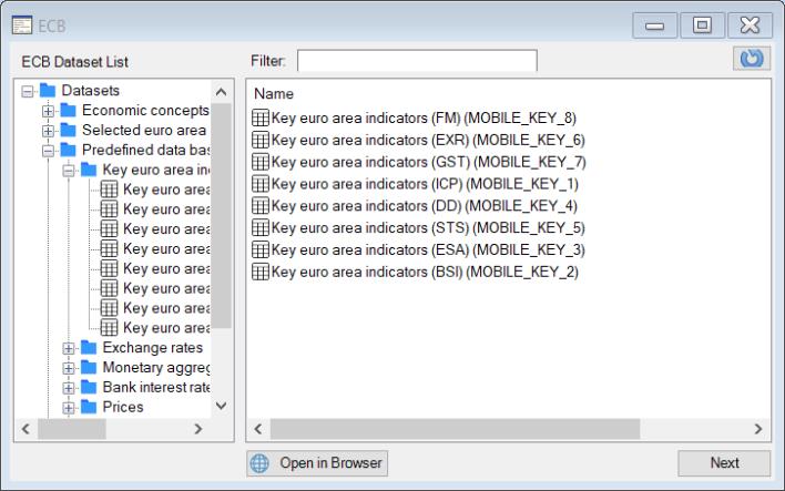 Some SDMX databases offer a data browser on their official website that allows you to perform more advanced search. Click on the Open in Browser button, which will open a web browser window showing the official database website.