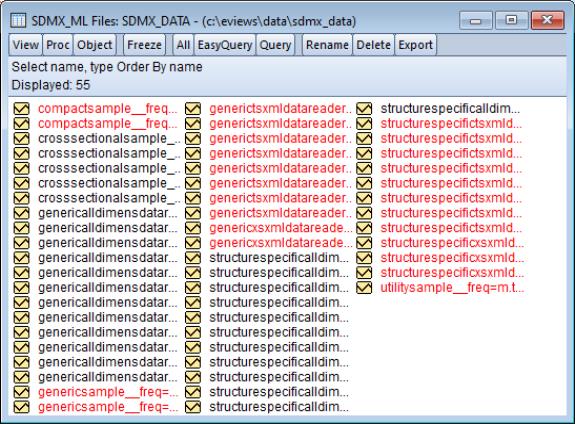 Click on to open the database. You will be presented with a standard EViews database with the , and search interface, to view all or a selection of the data series: