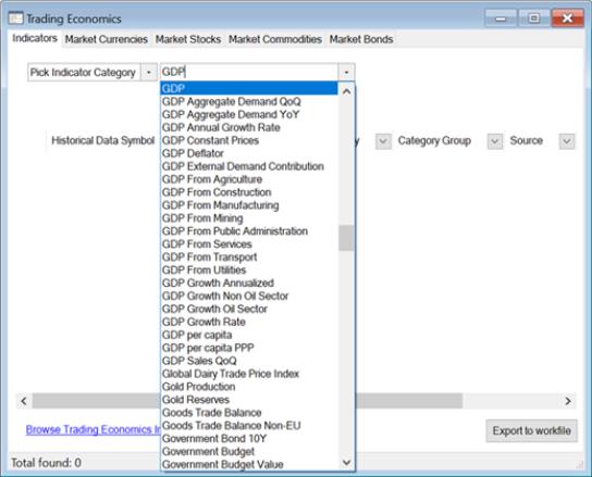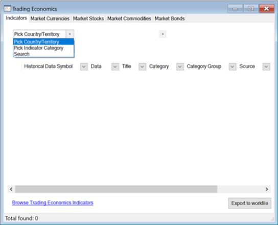An internet connection is required to obtain Trading Economics online data. For more information on data subscriptions, please see: