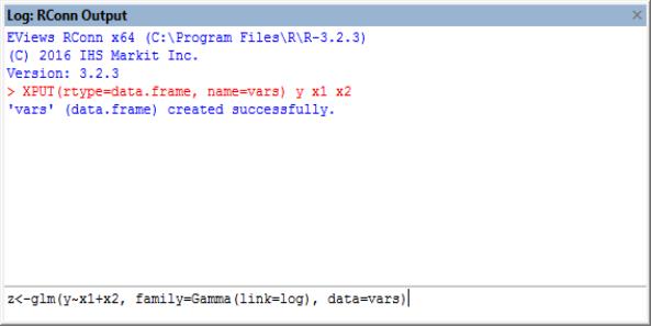 Now that we have an open connection to R, we can send EViews object(s) to R using the XPUT command: