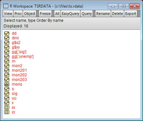 You can also open a pre-existing RDATA file as an EViews workfile, though because this operation can only open all R objects into a single workfile page, all the objects in the RDATA file must be the same frequency for this to work properly.