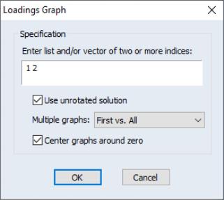Once a rotation has been performed, the last set of rotated loadings will be available to all routines that use loadings. For example, to visualize the factor loadings, select to bring up the loadings graph dialog.