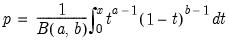 Returns the x satisfying the incomplete beta integral for elements of p, a and b: