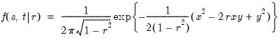 Computes the cumulative distribution function for a bivariate normal with 0 mean, unit variances, and correlation r: