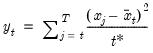 Decreasing samples calculation of the population (non-d.f. corrected) Pearson product moment variance.