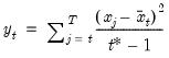 Backward cumulative variances (sample, d.f. corrected) of a series.