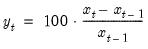 Returns one-period percentage change (in percent) in the series x: