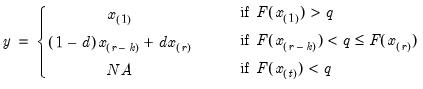 • m is an optional string controlling the method of calculating the empirical distribution function: “b” (Blom), “r” (Rankit-Cleveland), “o” (Ordinary), “t” (Tukey), “v” (van der Waerden), “g” (Gumbel). The default value is “r”.