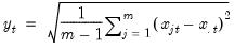 Square roots of the Pearson product moment sample variances for each row of the group, with d.f. correction.