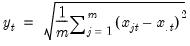Square roots of (population) Pearson product moment population variances for each row of the group, with no d.f. correction.