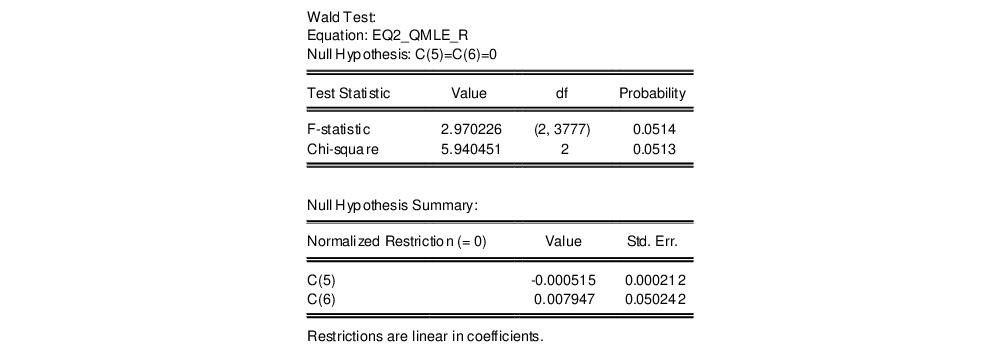 The test results show joint-significance at just above the 5% level. The and views will also employ the robust covariance matrix estimates.