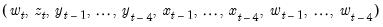 c gov log(m1) time cons(-1) cons(-2) cons(-3) cons(-4) gdp(-1) gdp(-2) gdp(-3) gdp(-4)