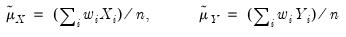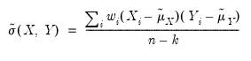 are weighted means (or zeros if computing uncentered covariances), and the