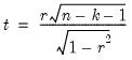 For ordinary Pearson and Spearman correlations, the t-statistic is computed as