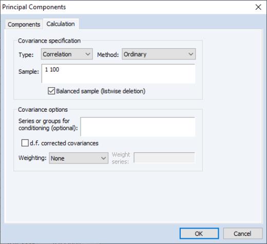 “Covariance Analysis”). You may, for example, specify the sample of observations to be used and perform listwise exclusion of cases with missing values to balance the sample if necessary. Or you can perform partial and/or weighted analysis.