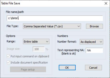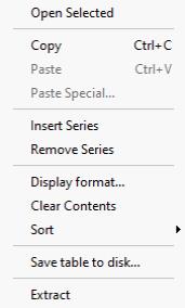 Lastly, you should note that as with series, you may write the contents of the spreadsheet view to a CSV, tab-delimited ASCII text, RTF, or HTML file by selecting and filling out the resulting dialog.