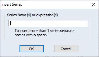 Selecting brings up a dialog which allows you to insert multiple series by simply entering their names or series expressions. The new series will be inserted after the currently selected series and all subsequent series will follow the newly inserted series. works slightly differently, in that no dialog will be shown and all selected series will be removed from the group. (See also