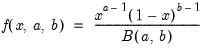 Beta | @cbeta(x,a,b[,n]), @dbeta(x,a,b), @qbeta(p,a,b), @rbeta(a,b) | ![]() for and for , where is the @beta function. |