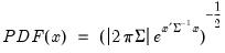 Multivariate Normal Distribution | @dmvnorm(x, S), @dmvnormc(x, S), @dmvnormi(x, S), @dmvnormic(x, S), @rmvnorm(S[, n]), @rmvnormc(S[, n]), @rmvnormi(S[, n]), @rmvnormic(S[, n]) | , where![]() and covariance matrix is positive semi-definite.x is a vector, S is a sym object. @dmvnorm* returns a scalar. @rmvnorm* returns a vector or matrix. If the optional argument n is omitted, the function returns a vector containing a single draw from the distribution. If n is provided, n is the number of rows of the returned matrix, with each row representing a draw from the distribution. |