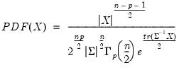 Inverse Wishart Distribution | @riwish(S, n), @riwish(X, S, n), @riwishc(S, n), @riwishc(X, S, n), @riwishi(S, n), @riwishi(X, S, n), @riwishic(S, n), @riwishic(X, S, n), @diwish(X, S, n), @diwishc(X, S, n), @diwishi(X, S, n), @diwishic(X, S, n) | , where ,X and are positive definite matrices, and the degrees-of-freedom parameter and . , so there are many relations among the Wishart and inverse Wishart functions, e.g., @riwish(S, n) and @inverse(@rwish(@inverse(S), n)) draw from the same distribution.X and S are sym objects, n is a scalar. @riwish* returns a sym object. @diwish* returns a scalar. |