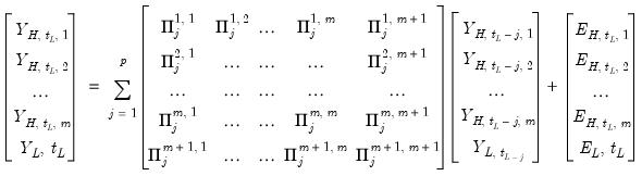 , respectively, and for brevity ignoring the intercepts and exogenous variables, we may write the VAR as:![]() | (49.1) |